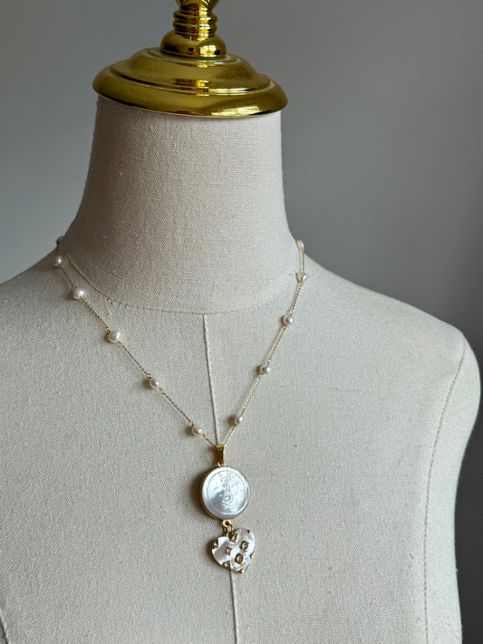 🤍 One of a kind delicate Authentic Reworked YSL button necklace - large pendant